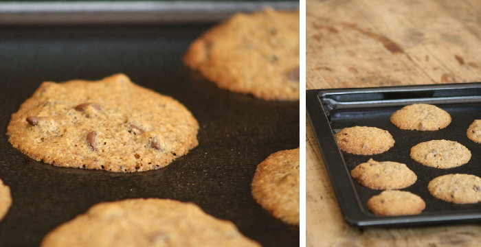 להוציא את התבניות מהתנור ו"לשחרר" את העוגיות עם מרית של חביתה. לתת להן להתקרר. בתחילה הן מאוד רכות ורק כשהן מתקררות הן מתקשות קצת. אנחנו אוהבים אותן רכות. אפשר לאפות יותר ואז הן תהיינה קשות. (זה נכון גם לעוגיות של ימי חול)