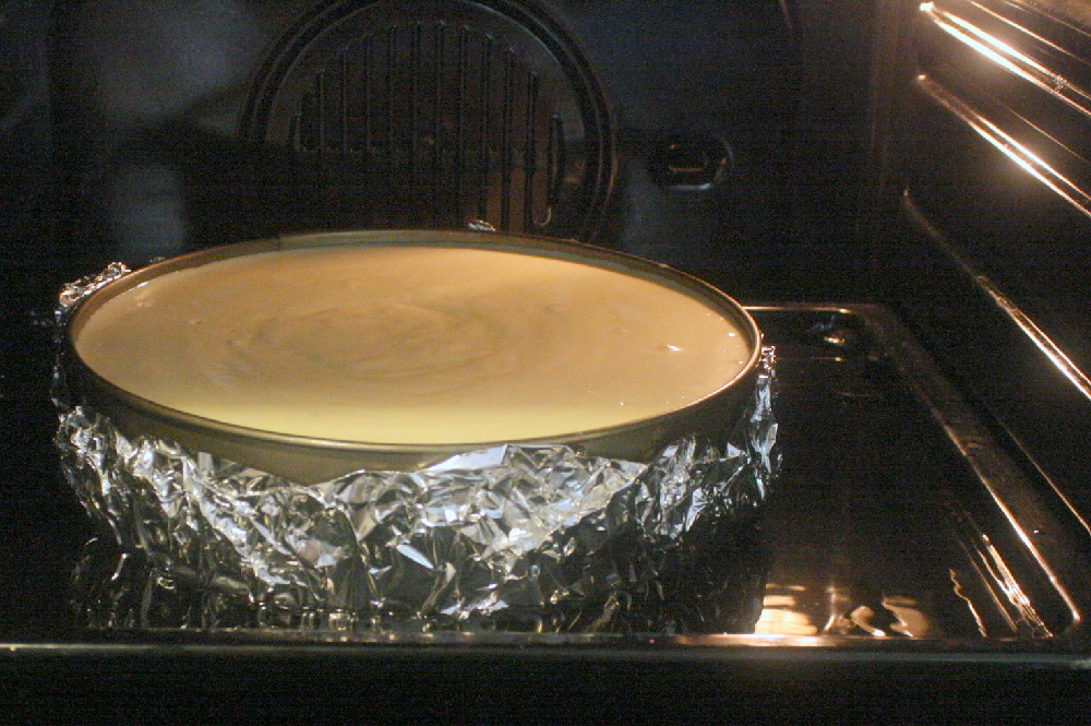 13. לעטוף, מלמטה את התבנית בנייר אלומיניום ליצירת אמבטיה שתשמור על העוגה מפניה המים שבתבנית בה נניח אותה.