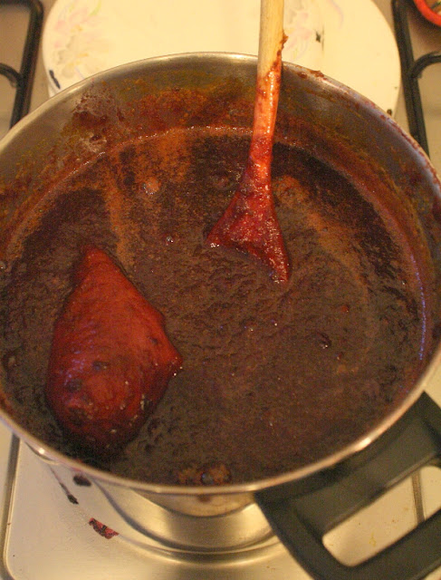 הוידוי השני נוגע לזמן הבישול. אומרים 8-10 שעות ואני בישלתי רק שש. בפעם הראשונה, זו שכישפה אותנו עשיתי חצי כמות ואכן הזמן היה מתאים והריבה חוסלה תוך ימים ספורים. הפעם השניה, זו המצולמת, שש שעות לא הספיקו והריבה הוחזרה אחרי כמה ימים לעוד בישול ותמצות.