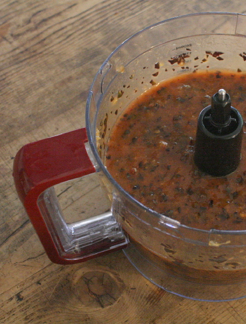 בשלב השני מגלענים ושמים את הגלעינים בצד. וקוצצים את השזיפים לעיסה אחידה.