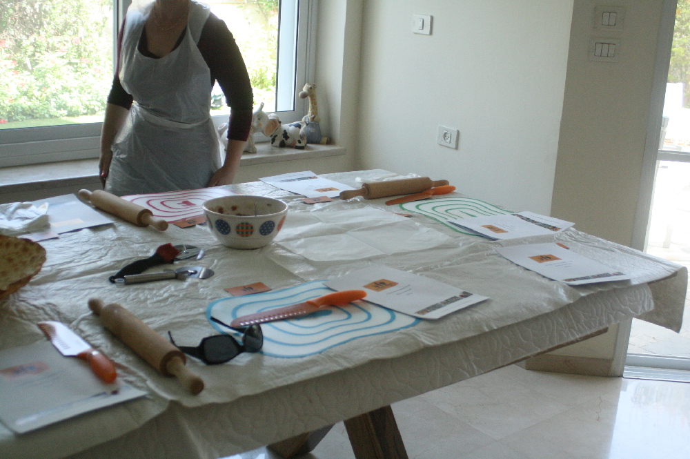 האורז והמרק מתבשלים להם בסירים ובינתיים רון מכין בצק נפלא שישמש אותנו בהמשך המפגש להכנת מספר מאכלים. את הבצק הוא עיבד עד דק ואני התלהבתי מהתוסף לפסטה שמתחבר לקיטשן אייד, למרות שאני אוהבת את ה"אימפריה" הידנית שלי. בנוסף הוא הכין בצק שמרים עדין והניח אותו לתפוח בצד.