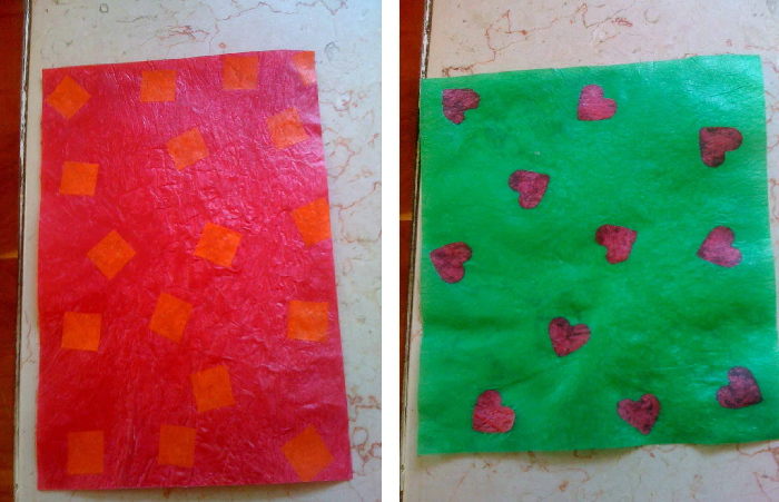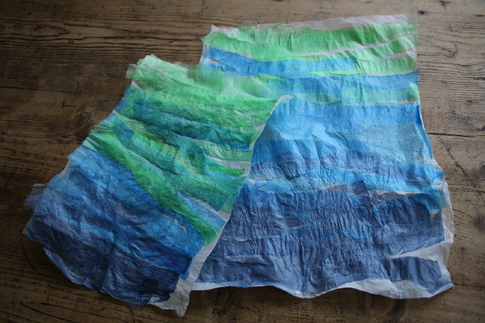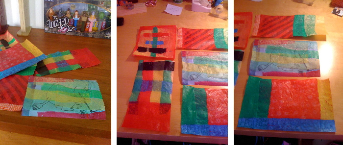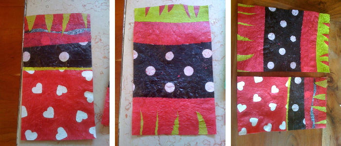 יצרתי "בדים" ע"י גיהוץ של שכבות זו אל זו. צריך לשחק קצת עם החום של המגהץ, ההדרכות אומרות חום נמוך, אבל לי יש מגהץ מאוד חלש אז החום האפקטיבי היה גבוה יותר. החומר מתכווץ תוך כדי הגיהוץ ומלחים את עצמו בכל השכבות זה יותר הפתעות ועיוותים וצריך לקחת את זה בכחלק מתהליך היצירה.