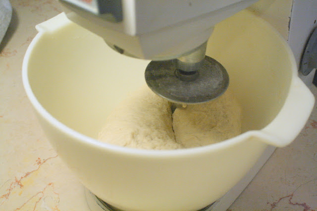 3. רק לאחד שהבצק מתחיל להתאחד מוסיפים שמן זית ומלח. שני אלו מעכבים את פעולת השמרים ואני אוהבת לתת לשמרים "פור" עם המים החמימים והסוכר.