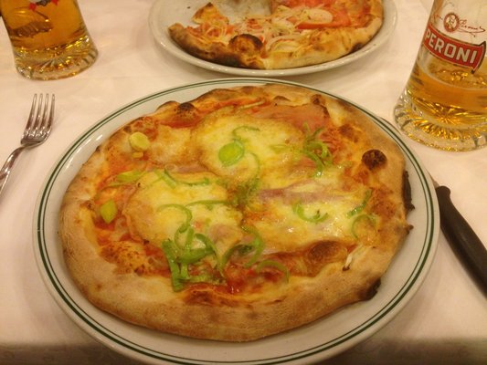 זה היה בוונציה שהבנתי שהיחסים ביני ובין הפיצות נמצאים בתהליך של שינוי. פיצה משובחת ברחוב צדדי, הפעם עם בצק דק דק ופריך להפליא (בתמונה לא רואים את הפיצה, אבל חלק מליטר הבירה רואים) גרמה לי למתן את התנגדותי למאכל הנ"ל ואפילו לנפק סופרלטיבים מעטים.