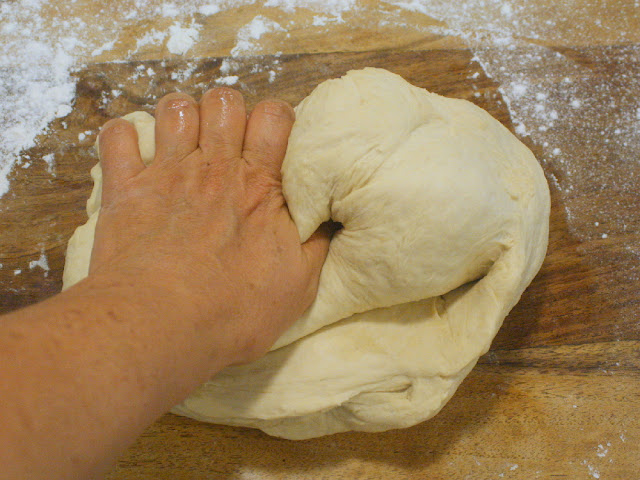 7. לאחר שהבצק הכפיל את נפחו, לשים ומוציאים ממנו את כל האוויר.