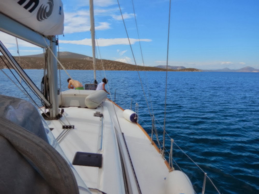 "התעוררנו"..משינה טרופה לקול קללות הקפטן: "סאממו ספצס…סאמו ספצצס סאממממ אמממו ספצס".לא ישנו, נעקצנו, נרטבנו בגשם..ואוזנינו לא הפסיקו לצלצל תוצאת לוואי של חתונת הדמים שהתרחשה מולנו.שכנינו הישראלים הקשורים אלינו לחרטום…כבר היו מצויידים בלחם, חלב ומים והם עמדו לעזוב כל רגע.שכנינו השבדים מדופן שמאל כבר חתרו בספינתם לעבר הים הפתוח לצלילי תוף ויקינגי עתיק.ואנו…אנו חיכינו לגברת אנה האחראית, שתבוא לפתוח את ברז המים ולמלא את חלקה בהסכם……אנה בוששה כמובן (כמסורת בנות איי יוון)..ואנו, בכדי להעביר את הזמן, פתחנו שולחן ודפקנו ארוחת בוקר על בסיס שקשוקה.בשעה 10:30…כשאנה טרם הגיעה..ומאחר והיה מוקדם להעביר את הזמן בארוחת צהריים..החלטנו לצאת לים.הים, בהתאם לתחזיות היה גבה גלי עם גלי גיבוע של מטר ויותר.הרוח הייתה מערבית קלה.השילוב בין הים והרוח היה רע למפרש …עם זאת, בלחץ הצוות הרמנו מערך ובמשך דקות ארוכות התבוננו זה בפניו של זה וחיכינו לראשון שיישבר.מויש היה כבר מעולף בשלב זה והמדבקה שמאחורי אוזנו התחילה להקיא.בהחלטה מנהיגותית נדירה הורתי על הורדת המפרשים…העלנו מהירות ל 2500 סל"ד הפקדתי את ההגה בידיו של מויש ושמנו פעמינו לאי דוקוס.מויש השתלט על היגוי הספינה במהירות והצבע חזר אט אט לפניו.כשהגענו לדוקוס..היטלנו עוגן באחד המפרצים…עטינו בגדי ים וקפצנו איש איש (פרט לענבל ואריאלה) אל המים הצוננים.ניצלנו את העצירה על מנת להפגין זה בפני זה את מיומנויות קפיצת הראש…איך נהוג לומר ?? אללה יוסתור..אמיר קיבל שיעור במבנה היאכטה (החלק התת מימי) …ובתמורה ערך היכרות עם טקס השוזי ומצוייד במטאא קוקוס ובדלי מים הוא הבריק את הסיפון והקוקפיט.שוב הרמנו עוגן והנפנו מפרשים, הפעם הרוח הייתה טובה ולצידינו ובמהירות של כ 5-7 קשרים עשינו דרכינו לנמל פורוס המפורסם.כשנכנסנו למפרץ הסירוני…פגשנו ברוח פנים עזה….המפרשים קופלו והמשכנו את דרכינו בעזרת המנוע אל המעגן.הכניסה לתעלת פורוס סוחטת תמיד קריאות התפעלות וגם מלחינו השתאו לנוכח היופי שנגלה לעיננו משני צדדיה.כשהתקרבנו לרציף..חיכה לנו איש לבוש מדים כחולים..הלה קיבל את חבלי הספינה, נתן מספר הוראות הגה ומכונה ועזר לנו להתחבר למים וחשמל.מסתבר שהאיש מכיר את בעלי "תשוט" ויש לו ידידים רבים בישראל..הוא בכלל אוהב ישראלים וחושב שאין כמו ישראל.על מנת להביע את אהבתו לישראל הוא השאיר ביאכטה קערה עם אבטיח צונן ו…הנחיות מפורשות כיצד ובאיזו שעה להגיע לטברנה שבבעלותו….הצוות הנאמן…ערך את טקס ההוקרה לסקיפר וחיבר עבור כך המנון מיוחד שמילותיו נשכחו ממני בבואי להעלות שורות אלו.במעגן, פגשנו כמובן את מיודעינו הישראלים מפורוס..וגם את האנגלים…וגם וגם וגם..עשינו סיבוב היכרות בשוק הבשר המפורסם של פורוס ובשוק חנויות המזכרות..ואז בצייתנות ובראש מורכן זחלנו לטברנה אליה הורו לנו להגיע…שם פגשנו את שאר צוותי היאכטות הסמוכות.בשלב זה איבדתי את הכרתי ופרשתי לספינה.מה היה באותה טברנה..והאם שרדו מלחינו הטובים את התפריט שהוצע להם…על זאת בפעם הבאה