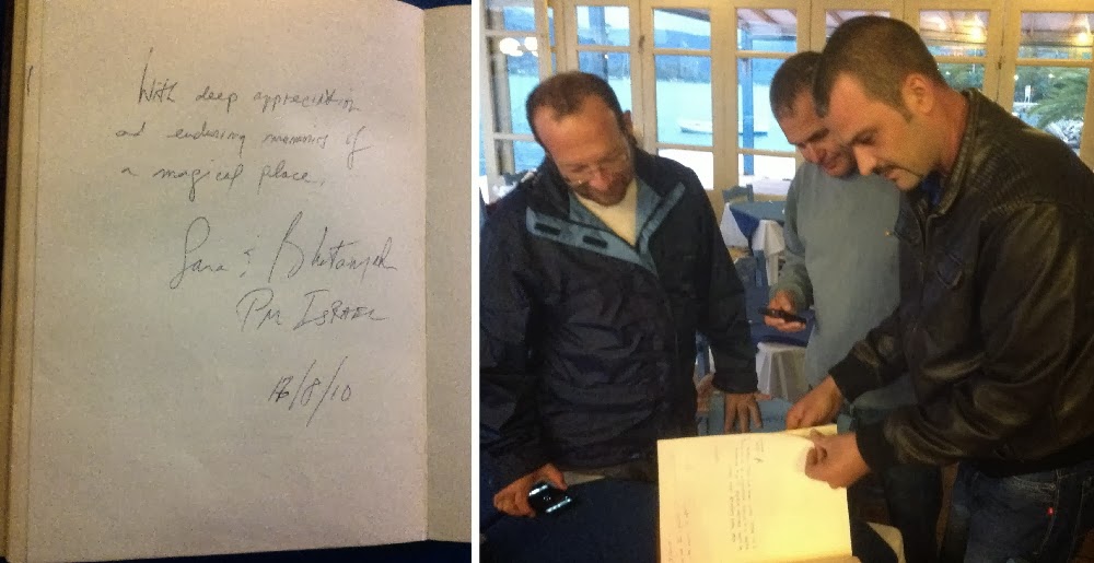 בעל המקום התהדר בכך שביבי היה שם וכתב להם הקדשה בספר האורחים.