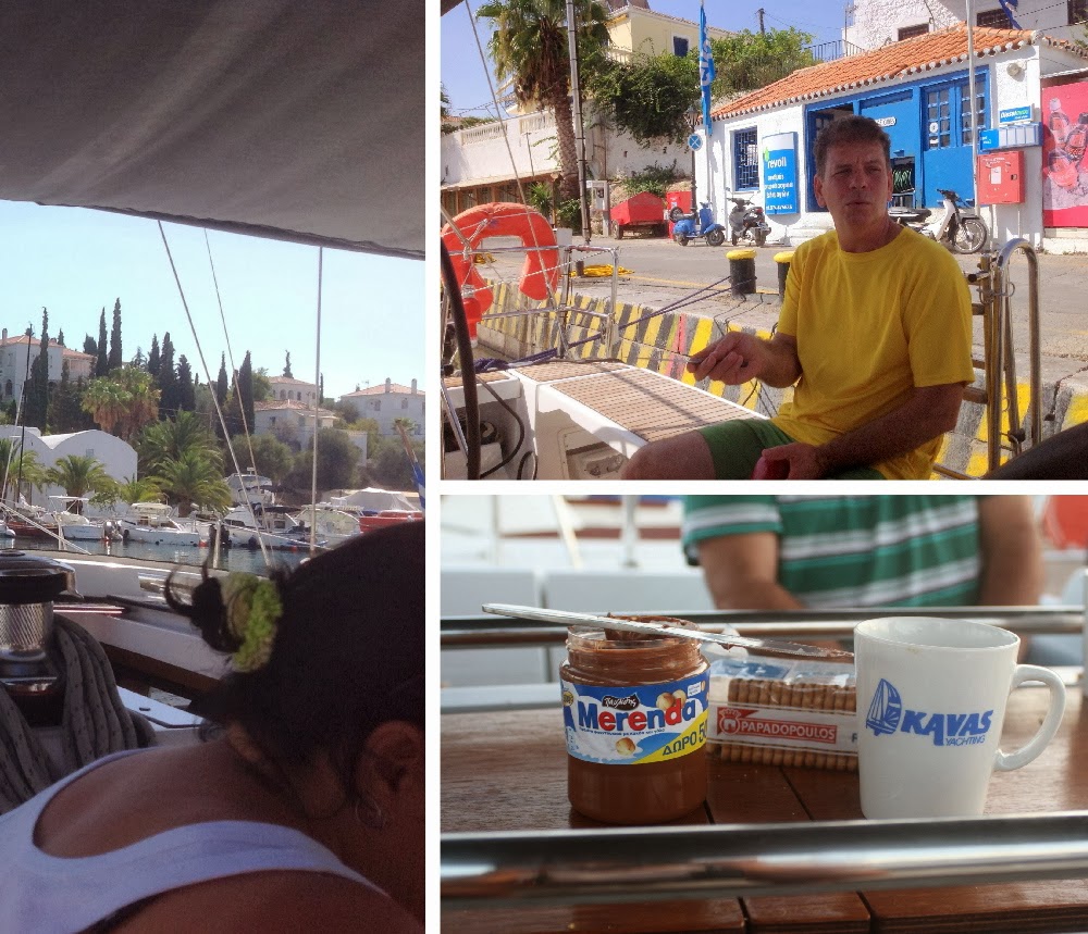 החבר'ה התעוררו אט אט. החלטנו להישאר יום נוסף בפורוס, מחמת אזהרות מזג האוויר ויצאנו לאכול ארוחת בוקר בטברנה מקומית, לראשונה מאז צאתנו להפלגה הזו.