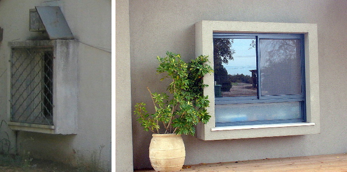 מה זה לשדרג חלון בולט? חלון המטבח החדש מוקם בקצה החיצוני של האדן הרחב ואיפשר מדף פנימי, בקדמת החלון, מעל הכיור. החלון השני שיצא בסלון הילדים, מוקם גם הוא בקצה החיצוני של אדן החלון ואפשר אדן ישיבה פנימי ("חלון צרפתי") בחדר המשחקים.