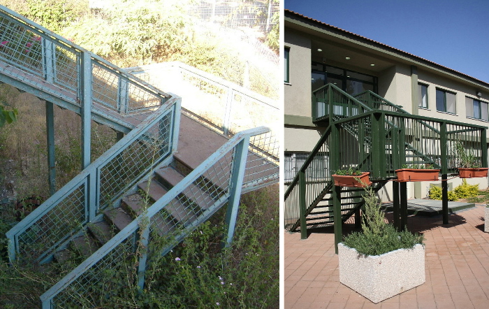 בסיור הראשון פילסנו את דרכנו בצמחיה העבותה ועלינו במדרגות החלודות לחדרי הלימוד הישנים והמוזנחים. הדרישה היתה תכנון של חדרי משרדים לחברה הכלכלית לפיתוח עמק חפר וחדרי טיפולים למחלקת הרווחה של המועצה. עברנו ניסים ונפלאות מבחינת סוגי החומרים והקונסטרוקציה שלא אלאה אתכם בפרטים. אבל התהליך מבחינה תכנונית היה מרתק.