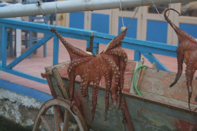 בחוץ היו תלויים תמנונים לייבוש. לא החלטנו אם זה מגעיל או יפה.