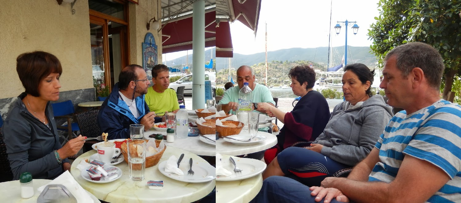 החבר'ה התעוררו אט אט. החלטנו להישאר יום נוסף בפורוס, מחמת אזהרות מזג האוויר ויצאנו לאכול ארוחת בוקר בטברנה מקומית, לראשונה מאז צאתנו להפלגה הזו.