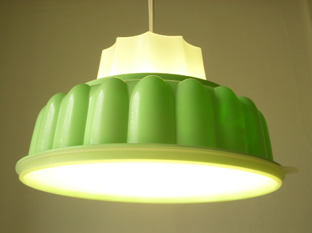 | גוף תאורה מכלי לרפרפת של Tupperwear – נמכר ב ETSY http://flamingjunevintage.blogspot.co.il/2010_06_01_archive.html |