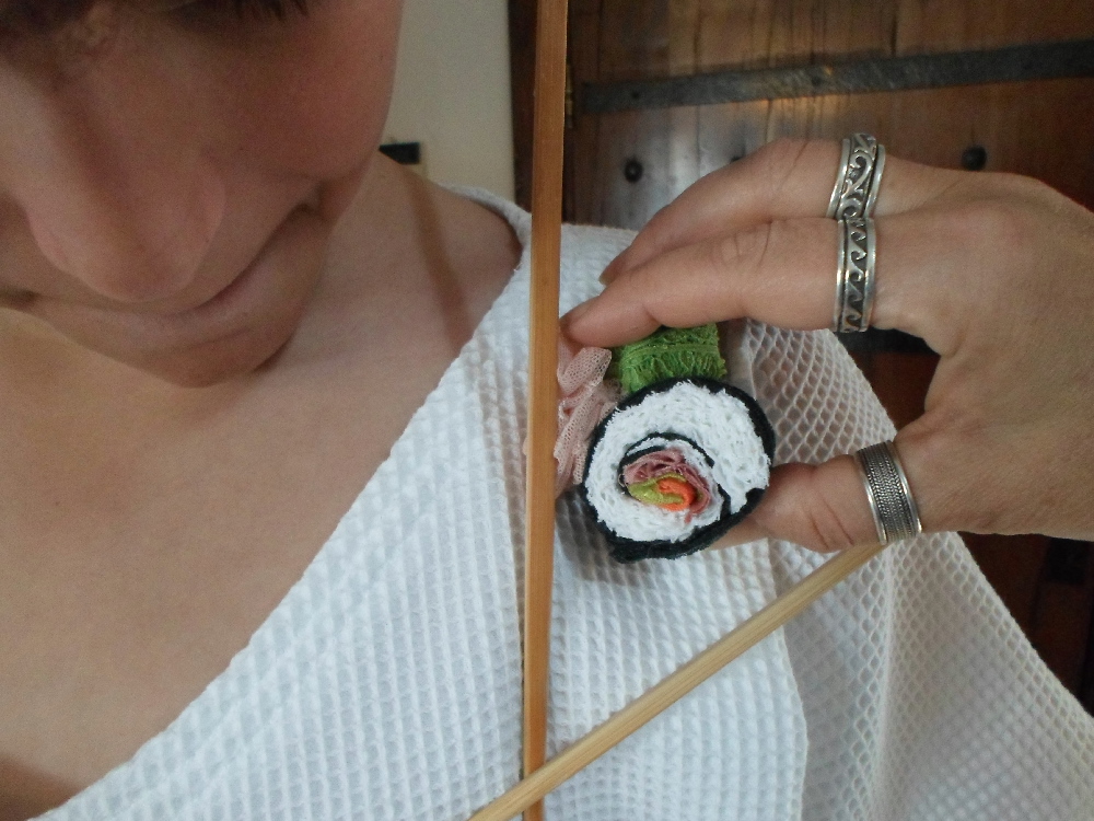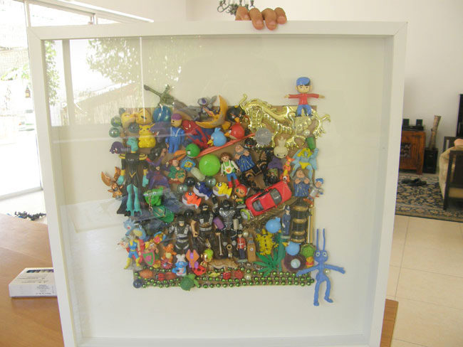 גוף התאורה הראשון שעשיתי עשוי משלד ברזל של אהיל, רשת לולים חתיכות זכוכית שונות ויציקת גבס. התמונה שלו היתה חרוטה לי בראש והמצאתי את דרך הביצוע תוך כדי העבודה. יצקתי את הגבס על רשת הלולים שנמתחה על שלד המתכת כשאני ממקמת את הזכוכיות לפי רצוני.