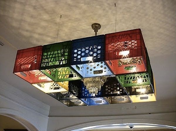 | גוף תאורה מארגזי פלסטיק – http://www.recyclart.org/2009/03/milk-crate-chandelier/ |